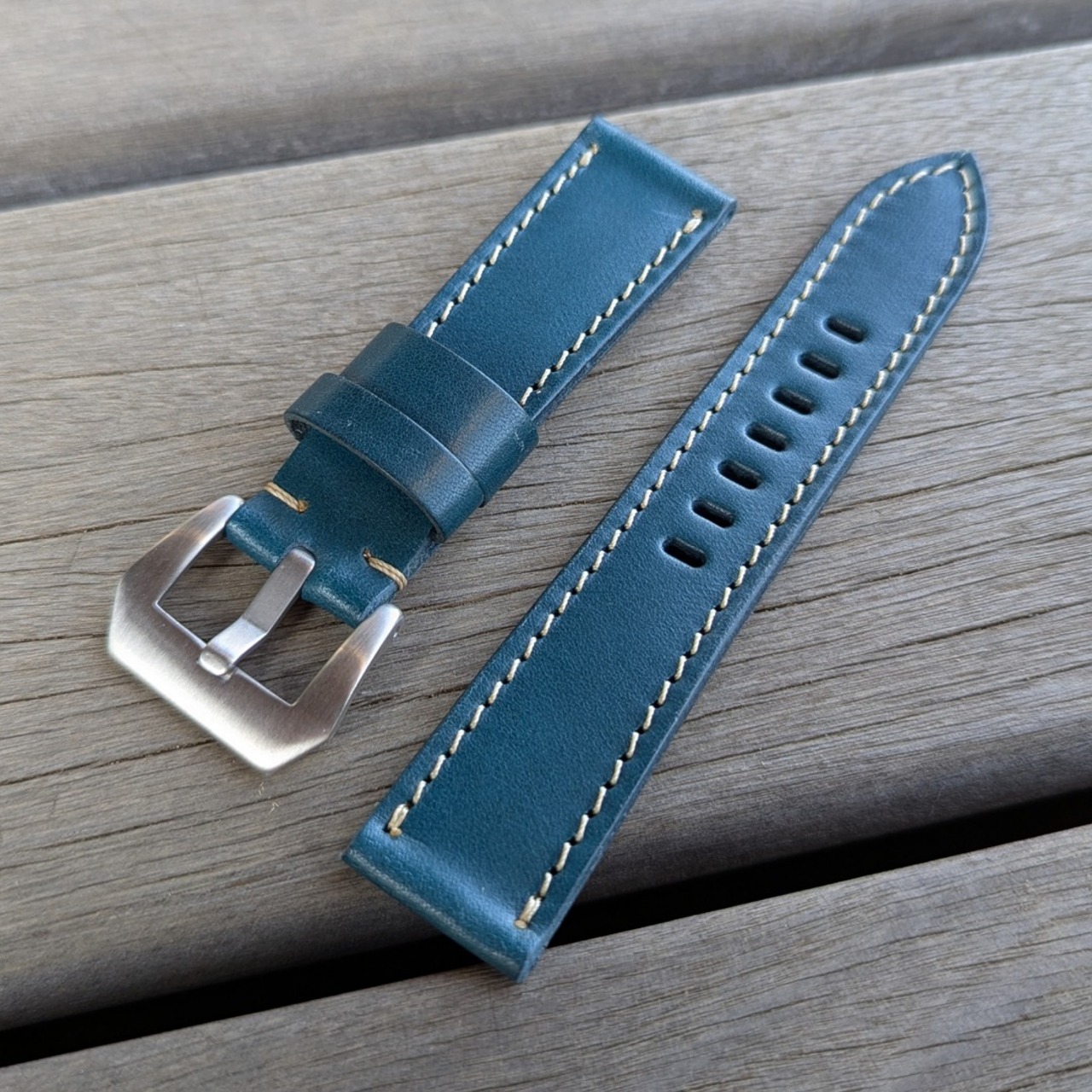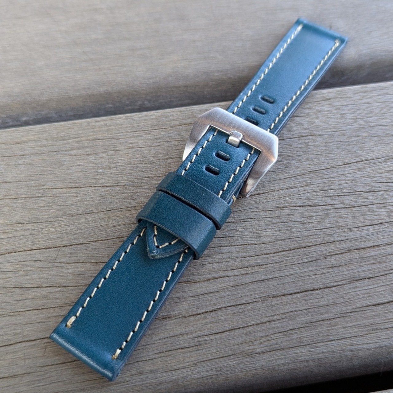 【ラグ幅:20/22/24MM】【2P-8BLYE】【子穴:楕円】北米ステア 国産なめしのヌメ革 ブルー ハンドメイド 日本製 バックル付き 腕時計 替えベルト LEVEL7