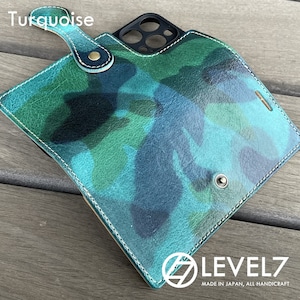 【arrows we2 F-52E用】 手帳型 バックカット ダイヤモンドパイソン ナチュラル 生成りヌメ革をベースにした加脂オイルレザー コンチョ付きフラップ LEVEL7