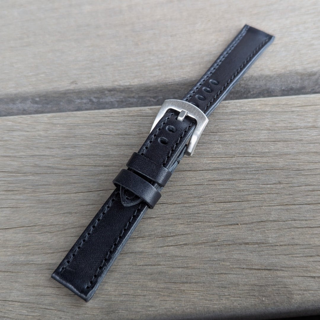 【ラグ幅:20/22/24/26mm】【子穴:楕円】【ハの字型】日本製 ハンドメイド ステア スムースレザー ヌメ革/レザーベルト ブラックステッチ 腕時計 替えベルト SP-H007 LEVEL7
