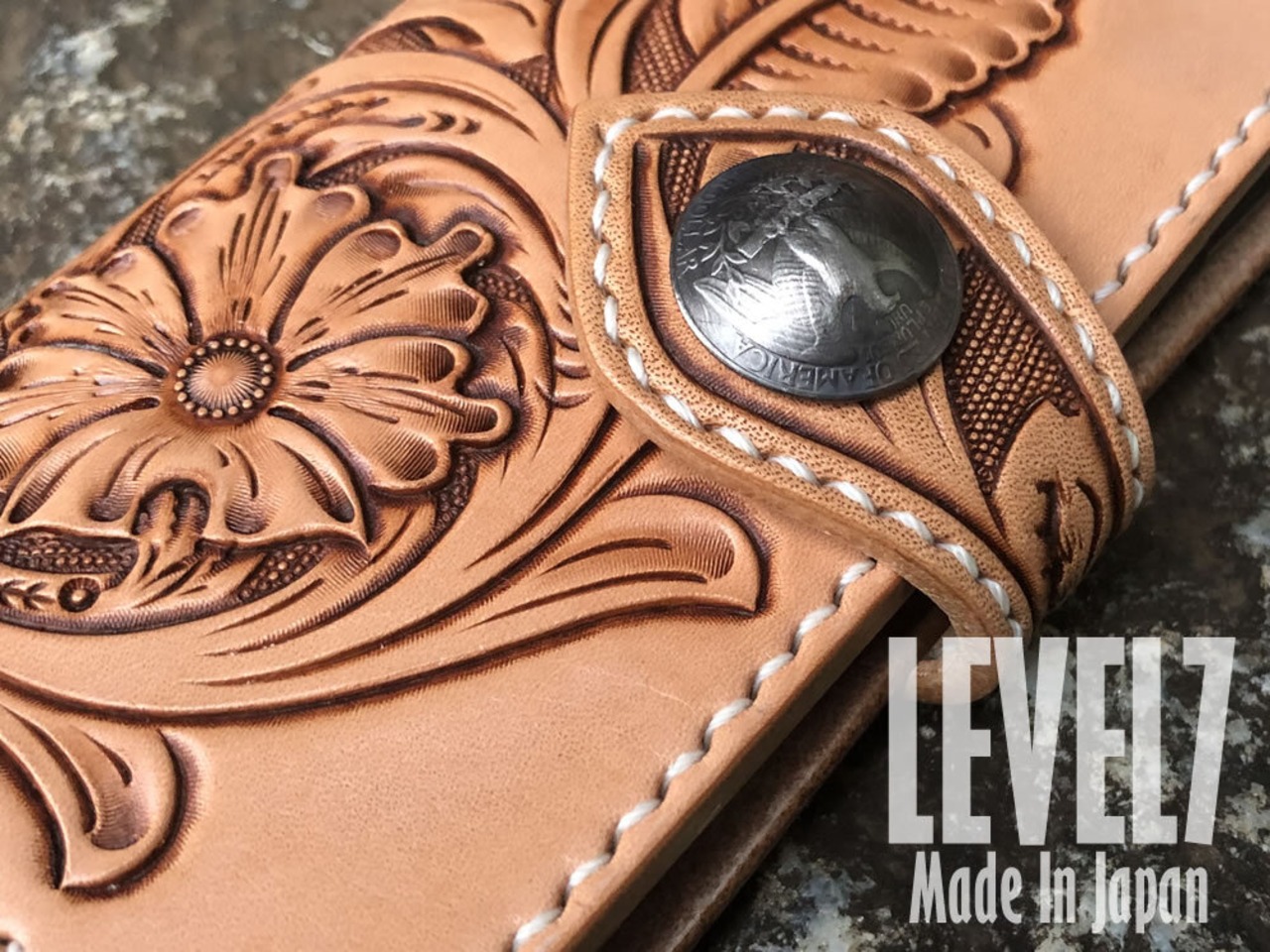 【iPhoneケース】各種対応 手彫り 手縫い 本革/レザー シェリダンスタイル/フラワーカービング ハンドメイド ハーマンオークレザー使用 IP-B-3FC1 LEVEL7