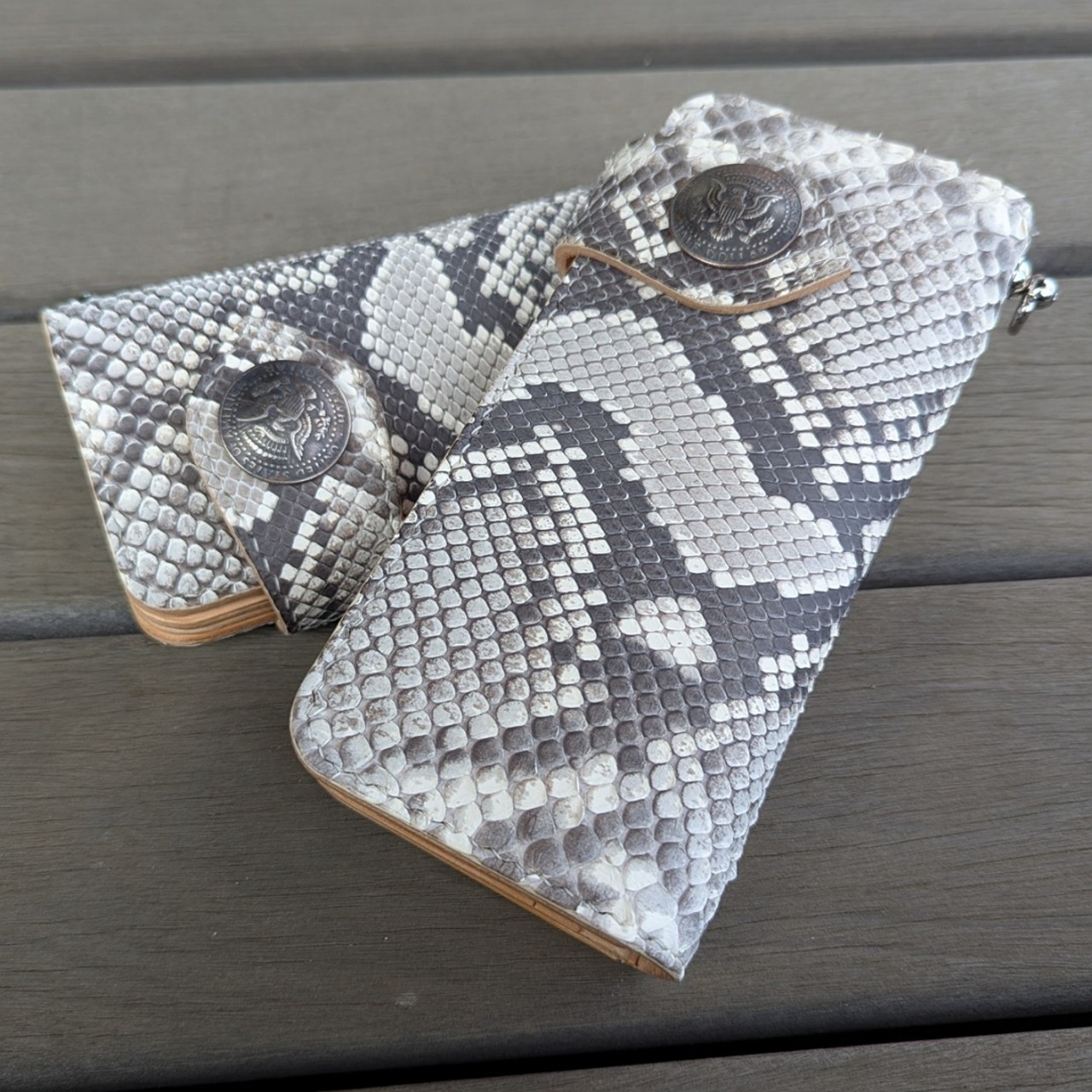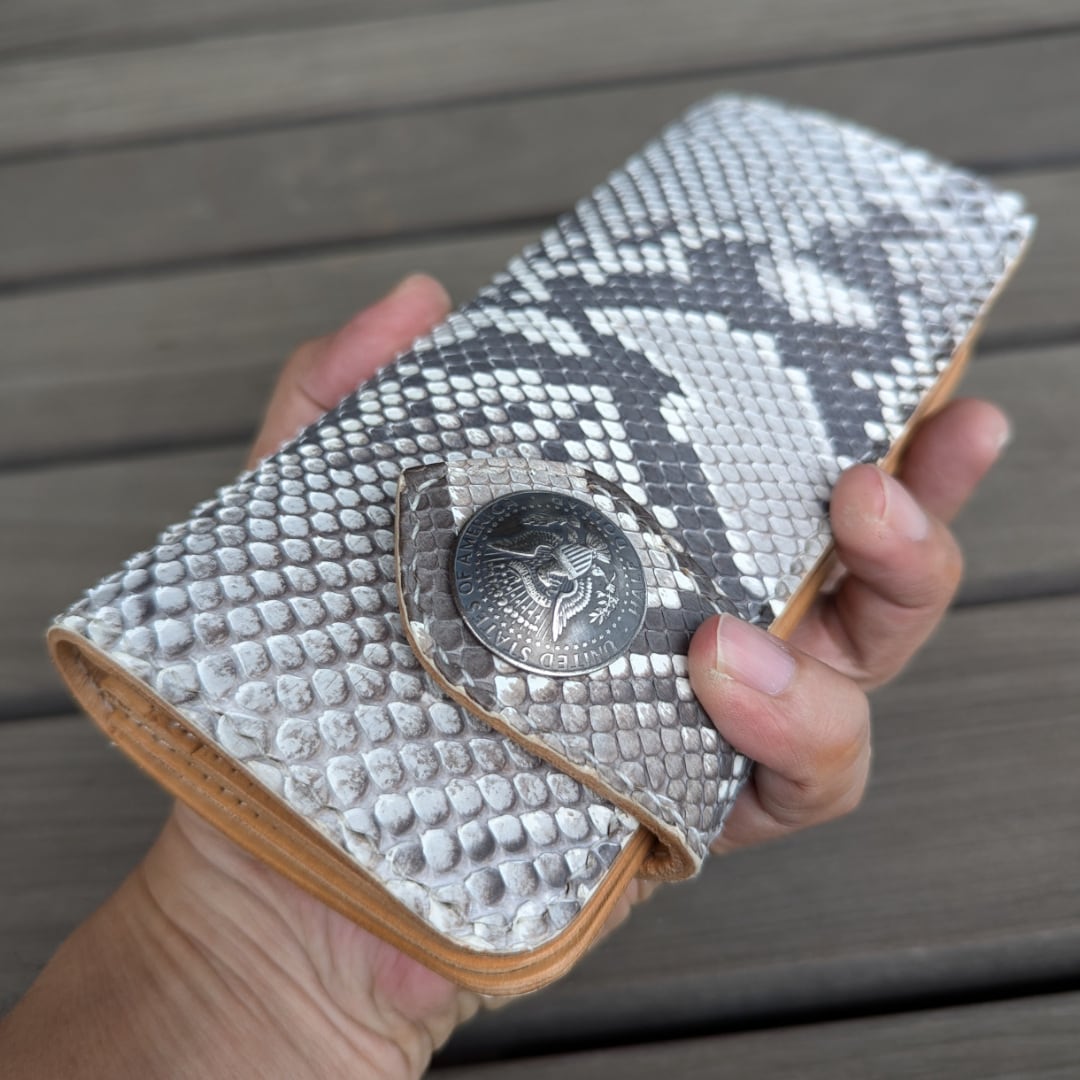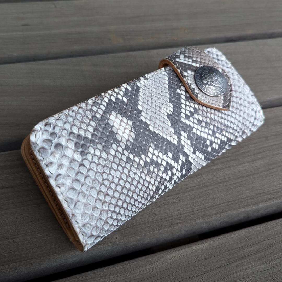 【ロングウォレット】長財布 ダイヤモンドパイソン 手縫い 10枚カードポケット ヌメ革 バイカーズウォレット KLW002-PY LEVEL7