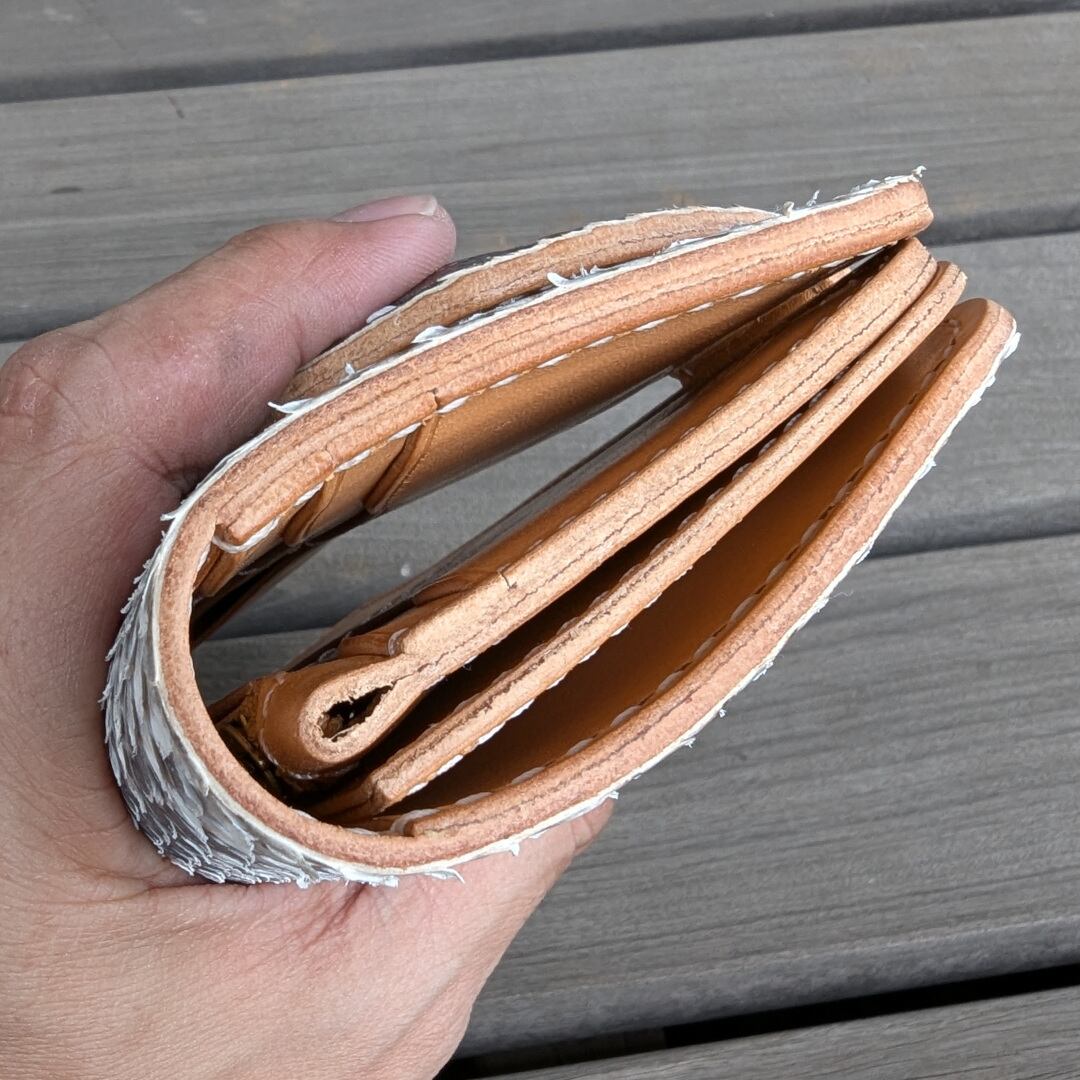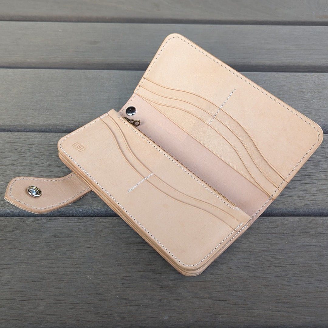 財布のインナーは、当社メイン機【足踏みミシン TE-5】にて縫製され、アウターは、極太の糸を手縫いにて縫製した仕様。 機能性、デザイン性を十分に考え設計していますので、使いやすさも抜群です。