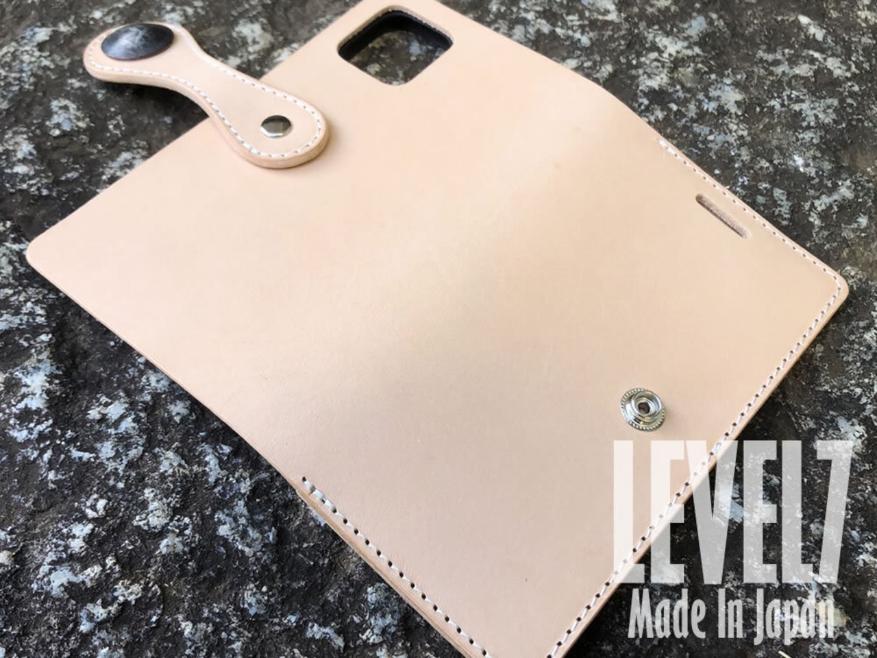【iPhoneケース】各種対応 手帳型 イタリアンレザー 生成りヌメ革 ナチュラル コンチョ付き丸フラップ バイカーズスタイル BS-CON2