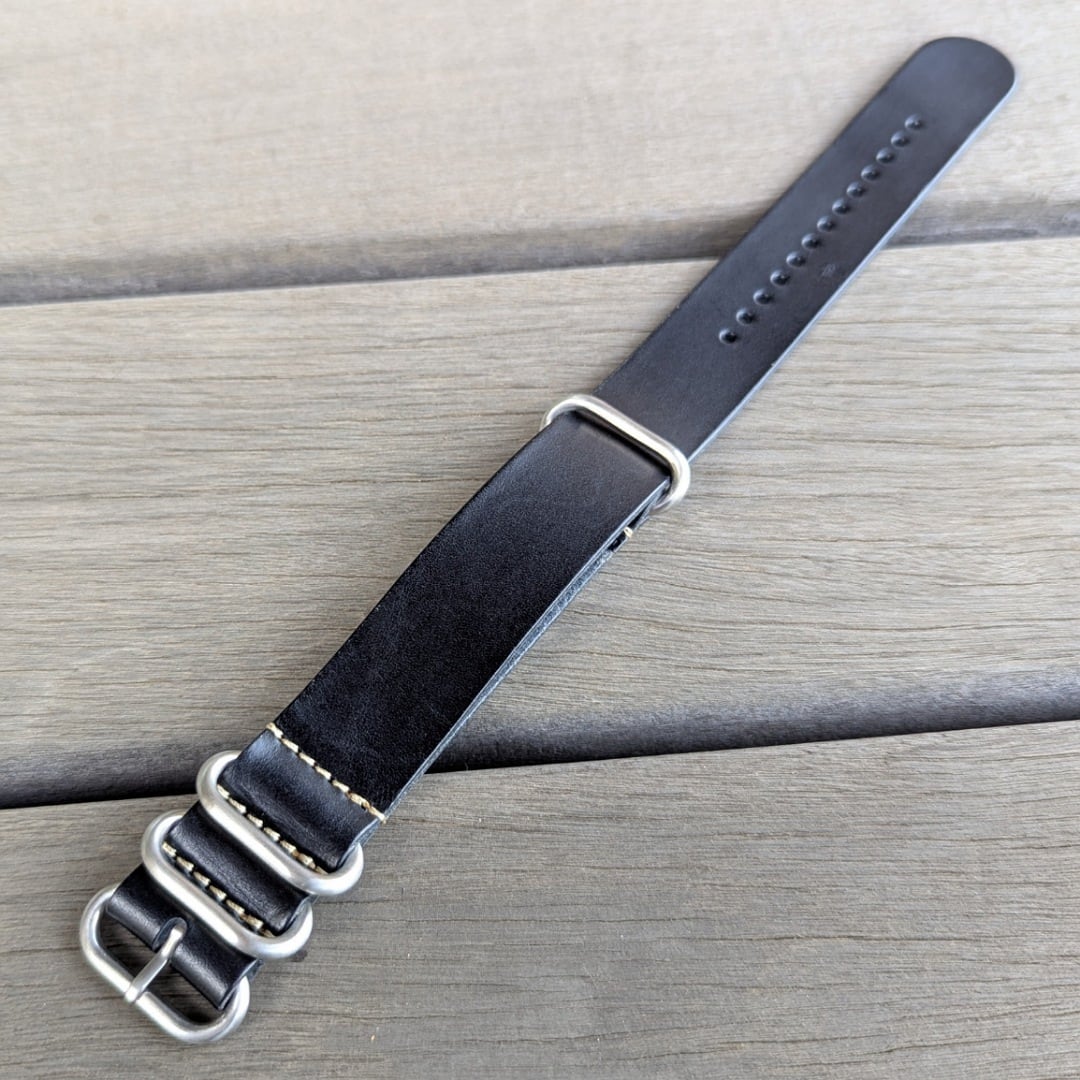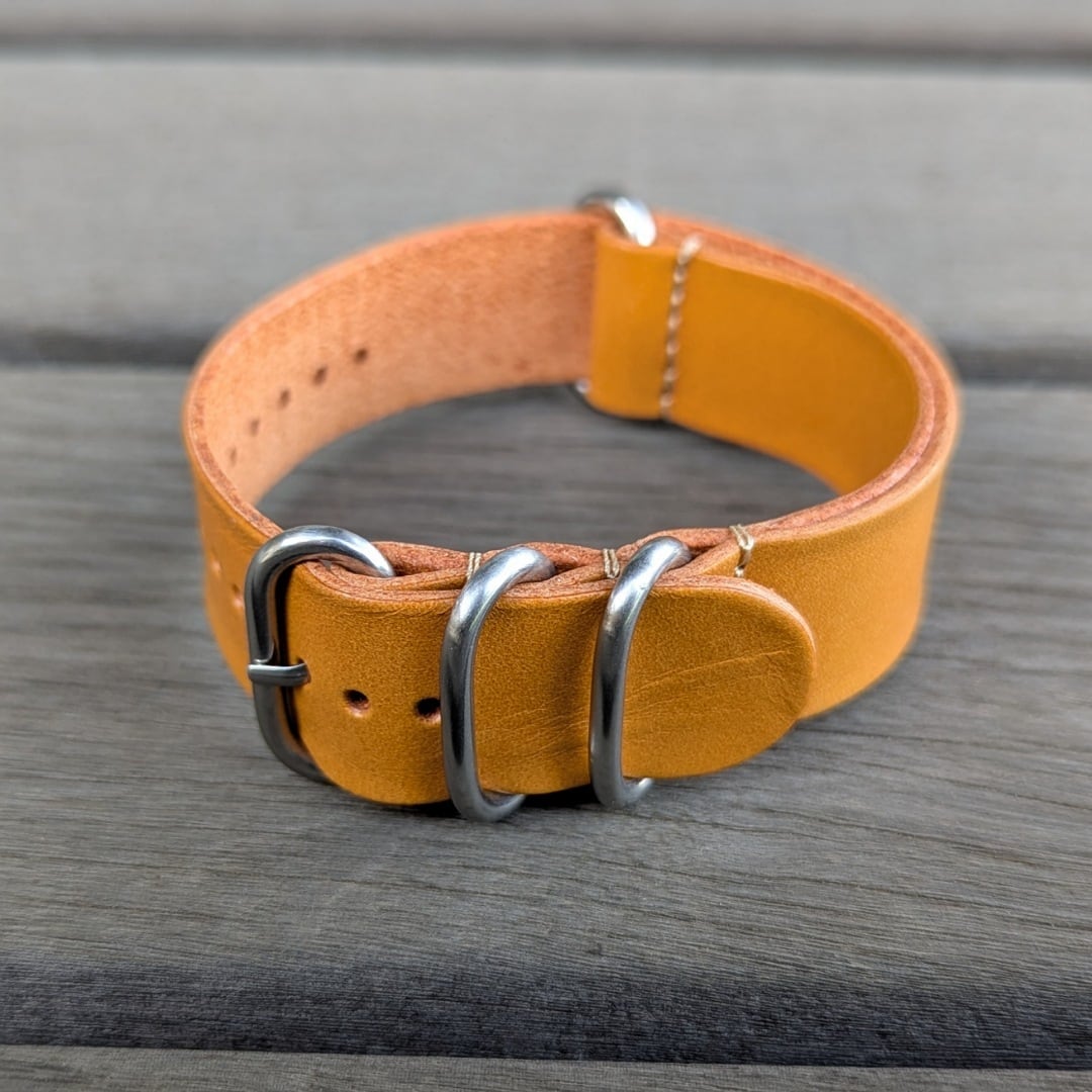 【4カラー】【ラグ幅:20/22/24/26MM】【2サイズ】日本製 ハンドメイド 国産なめし スムース ヌメ革 ZULU/NATO レザーベルト 4リング 腕時計 替えベルト LEVEL7