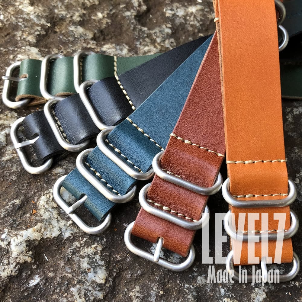 【ラグ幅:22MM/24MM/26MM】【2サイズ】日本製 ハンドメイド パネライ スタイル 国産フルタンニン スムース ヌメ革 ZULU/NATO レザーベルト 4リング 腕時計 替えベルト SP-ZULUSS-BL LEVEL7
