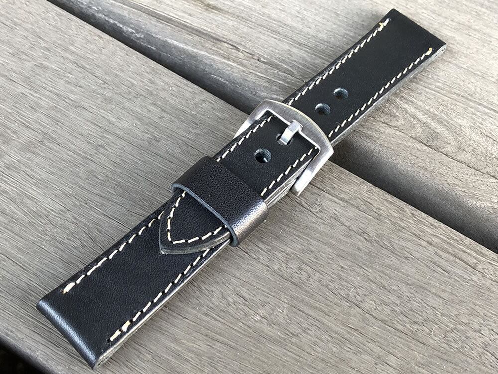 【ラグ幅:22MM/24MM/対応】バケッタ製法 オイルイタリアンレザー/ヌメ革 ブラック×ライトブラウンステッチ バックル付き 腕時計 レザー替えベルト SP-H003C6-BR