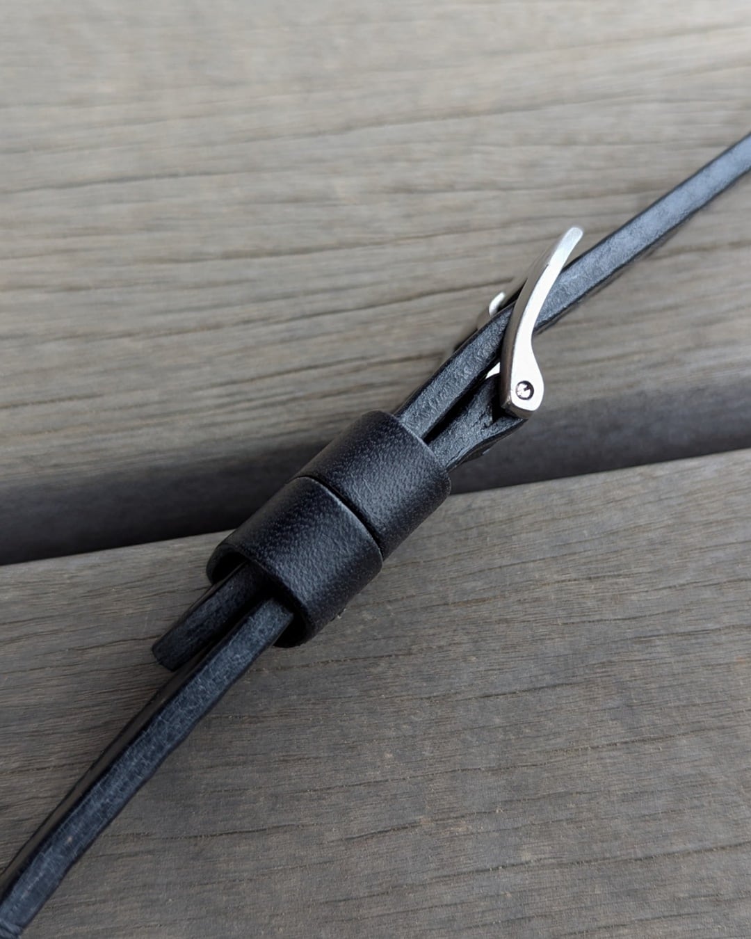 パネライや、ロレックスなどの大柄なダイバーズウォッチに負けない厚さ、約1.7MMに革を漉き使用しています。