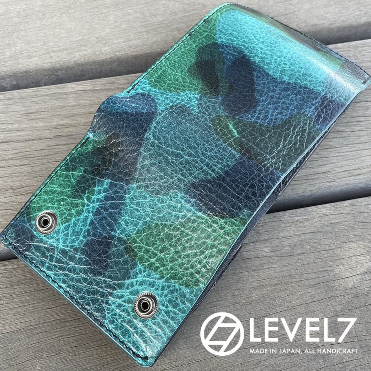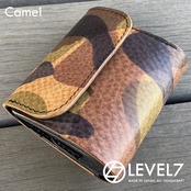 3カラー 日本製 バイカラー ブラック ハンドメイド イタリア トスカーナ州のアッズーラ社 エルヴァケーロ使用したコンパクトウォレット/ミニウォレット カモフラージュ 迷彩染色のプルアップオイルレザー 100%フルタンニンなめしのヌメ革 日本製 CW001-CAMO LEVEL7